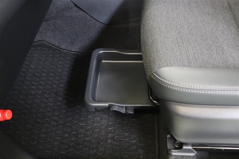 助手席下にはシートアンダートレイを装備しています。引き出して床にじかに置きたくない買い物袋を置いたり、雨の日には濡れたカバンを置いたりもできます。ティッシュなどの収納としても便利に使えます。