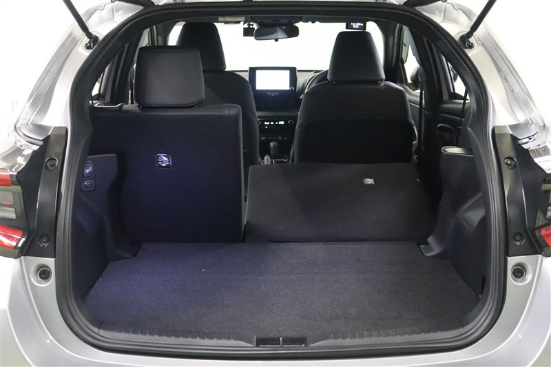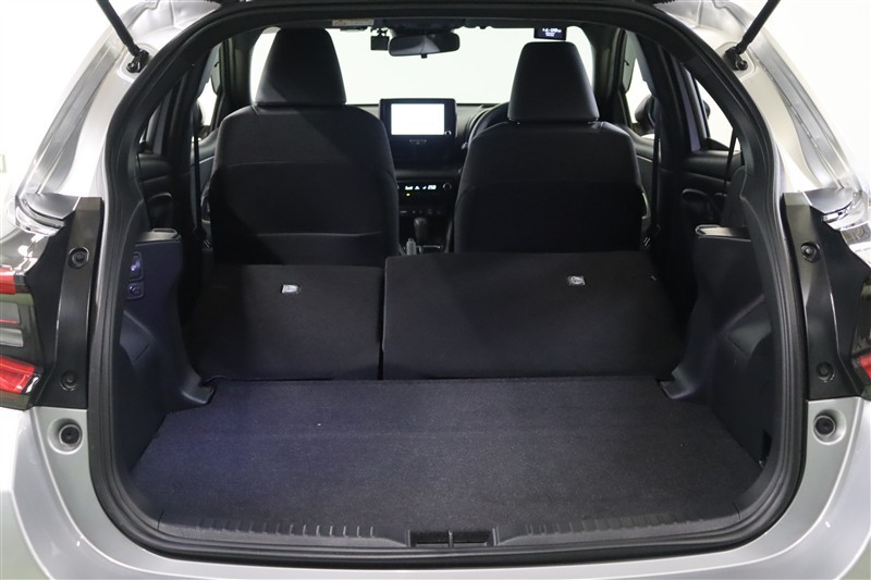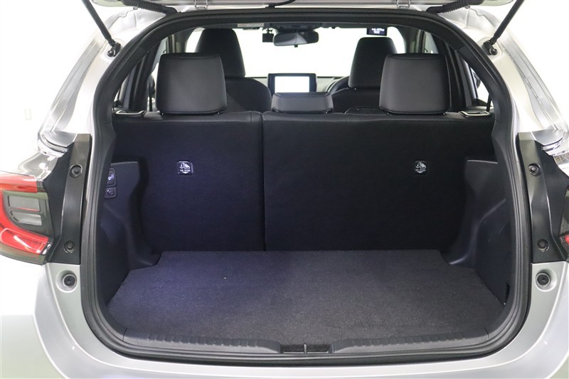ヤリスはバックドアの開閉時の張り出しが少ないため、狭い場所でも開閉しやすくなっています。コンパクトに見えるラゲッジスペースですが、開口部が大きく開くので荷物が載せやすく、使いやすいスペースです。