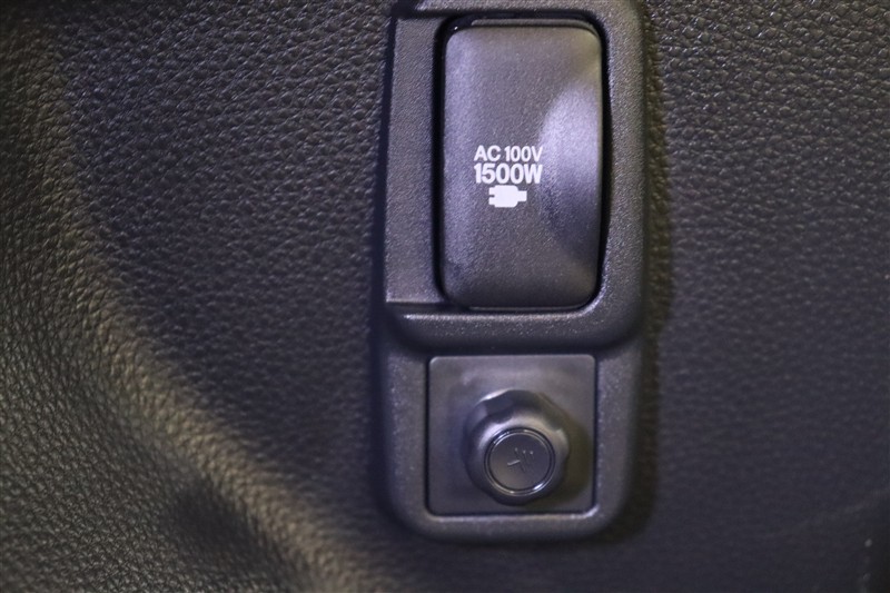 家庭用と同じコンセント【100V・1500W電源】を装備しています。PCなどの電気製品に対応し、走行中にも使用することができます。アウトドアでも活躍しますし、停電などの非常時には電源としても使えます。