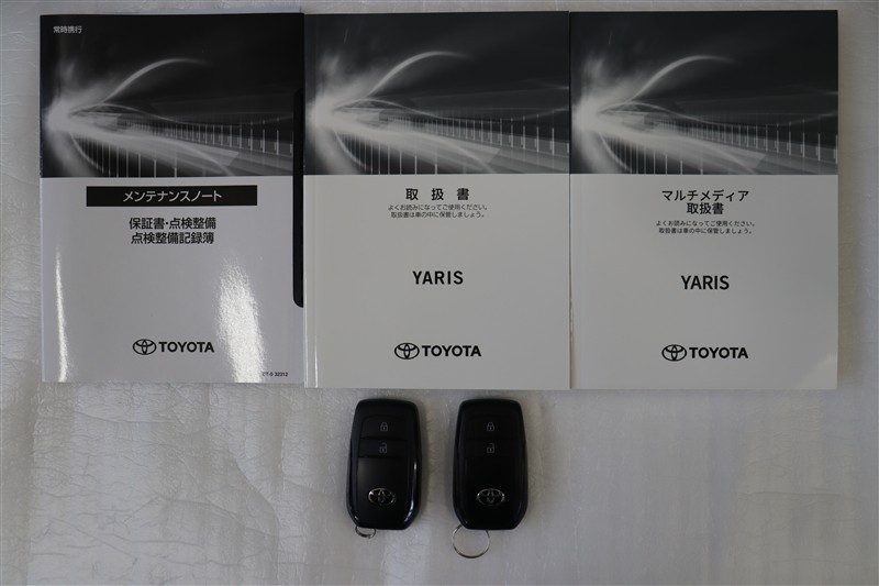 メンテナンスノート、取扱説明書です。メンテナンスノートにはその車の整備記録が事細やかに記録されています。車の履歴が判るとても重要な物です。車検証と一緒に大切に保管してくださいね!