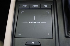 水平基調で視認性が良く、細部までこだわったお洒落な高級感が漂うステアリング廻り。先進的な大型タッチディスプレイにアナログ時計を入れてくるところがディテールにこだわるレクサスならではですね。