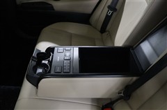 可動式のアームレストには収納ボックスと格納式のドリンクホルダーを装備。使わない時は格納しておけるのでスマートです。後席のリクライニングやシートヒーターの調整、エアコン操作のスイッチも備えています。