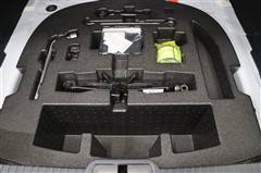 ラゲージスペースには床下収納を備えています。洗車用品などを入れておけて便利ですよ。スペース内にパンク修理キットを装備しています。最近は未使用のまま廃棄となるスペアタイヤが多いので、エコですね。