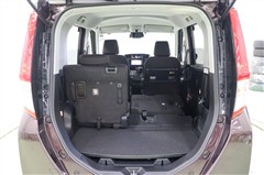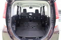 シートを倒してしまえば、ほぼフラットな使いやすい大空間が現れます。バックドアが大きく開き、スクエア型の開口部で、大きな荷物や背の高い荷物も積み込みやすいですよ。