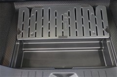 さらに、手前部分を開ければ深めの収納スペースがあります。プラスチック素材になっているので、掃除がしやすく、アウトドア用品なども気にせず積み込めます。