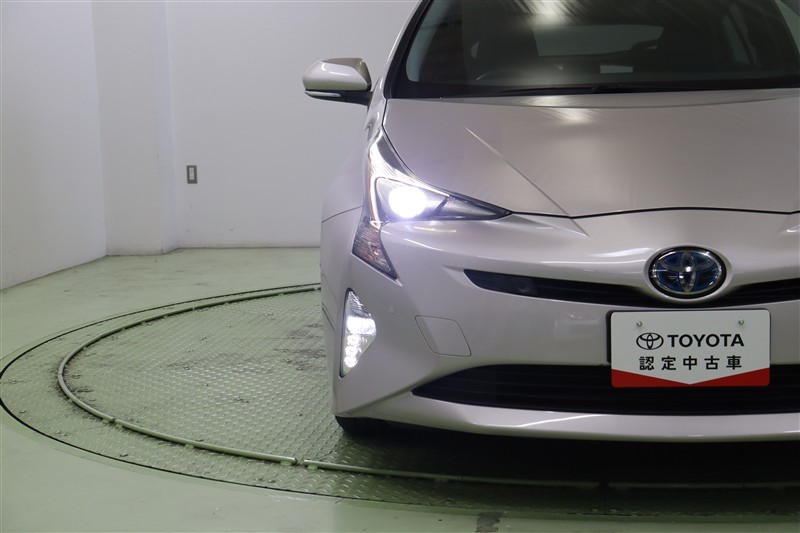 プリウスの特徴あるシャープな切れ長ヘッドライトはLED。周囲の明るさを感知して点灯・消灯するオートライト搭載。オートハイビームも搭載していますので面倒なヘッドライトの切替えは不要です。