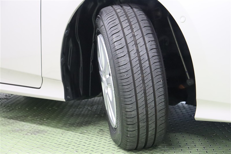 スタイリッシュなデザインのホイールキャップ付純正アルミホイールを装着しています。