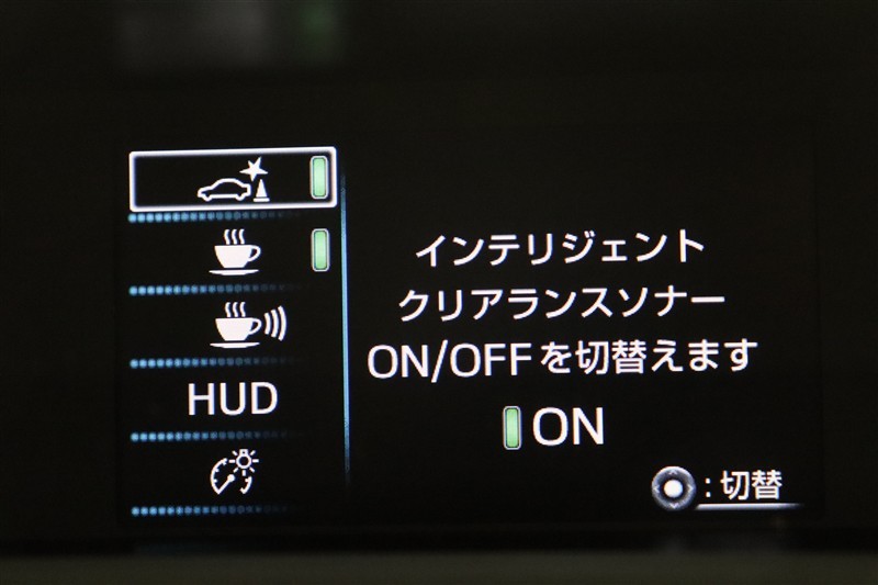 ヘッドアップディスプレイ(HUD)です。運転に必要な情報をフロントガラスの視野内に投影することで視線を外さず確認できます。視線移動や焦点調節が少なくて済むので安全性の向上に貢献します。