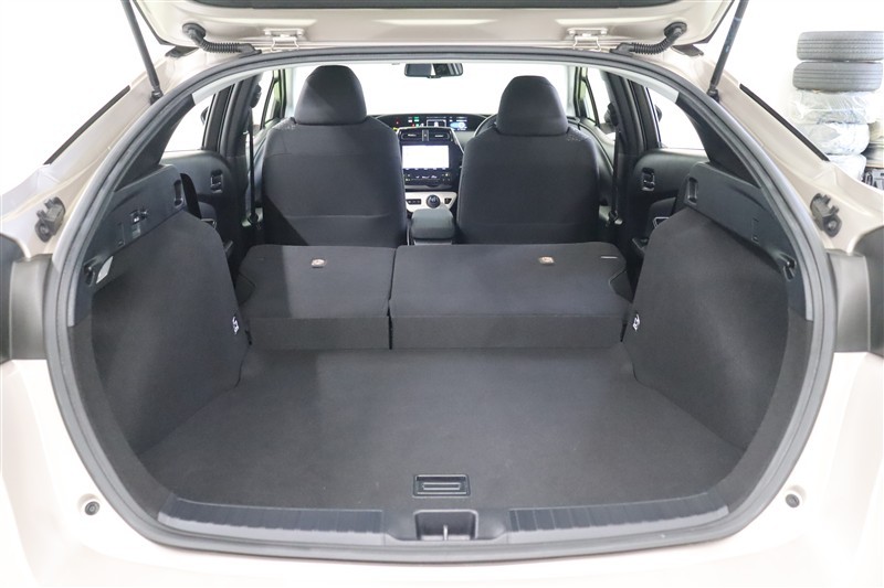 ラゲージスペースには床下収納を備えています。洗車用品などを入れておけて便利ですよ。スペース内にパンク修理キットを装備しています。最近は未使用のまま廃棄となるスペアタイヤが多いので、エコですね。