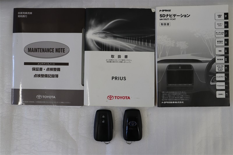 メンテナンスノート、取扱説明書です。メンテナンスノートにはその車の整備記録が事細やかに記録されています。車の履歴が判るとても重要な物です。車検証と一緒に大切に保管してくださいね!