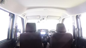 高いアイポイントと広いガラスエリア、水平基調のインパネとフロントピラーに組み込んだガラスによって、車両前方と周囲の状況をしっかり見渡すことができる見晴らしのよさが実現されています。