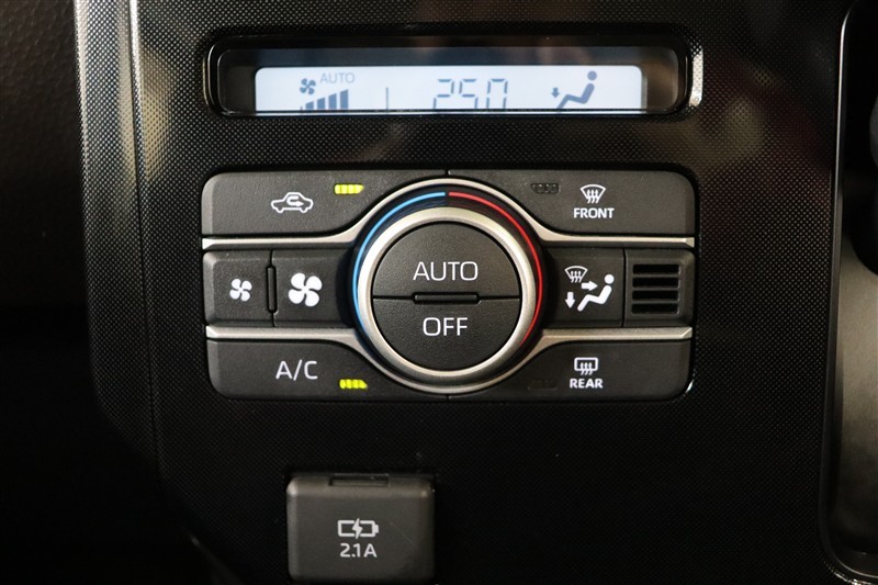 エアコンは直感的に操作できるシンプルデザインのオートエアコンです。 左下には給電用USBポートが装備されています。iPhoneやスマホの充電など、車内にあると便利ですね!