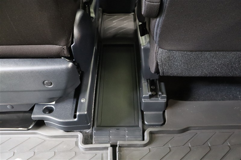 運転席と助手席間にはフロアトレイが備わっています。鞄などを置くのにちょうど良く、雨の日に濡れたカバンでもサッと置けます。