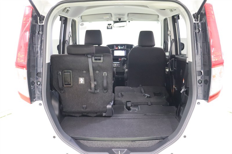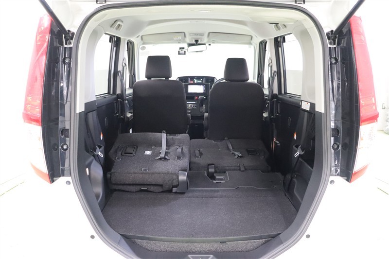 シートを倒してしまえば、使いやすい大空間が現れます。 助手席側は助手席リフトアップシートになっているためフラットにはなりません。