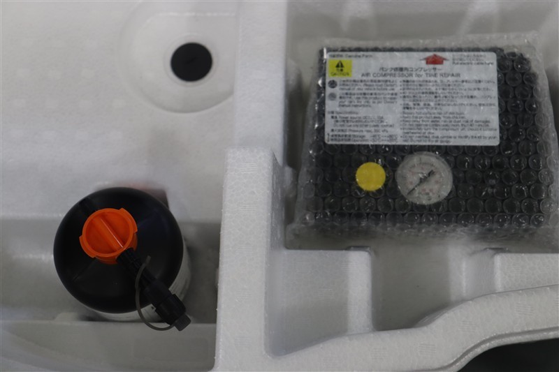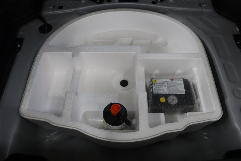 スペース内にパンク修理キットを装備しています。最近は未使用のまま廃棄となるスペアタイヤが多いので、エコですね。