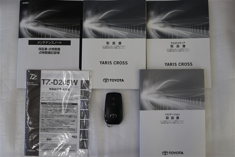 メンテナンスノート、取扱説明書です。メンテナンスノートにはその車の整備記録が事細やかに記録されています。車の履歴が判るとても重要な物です。車検証と一緒に大切に保管してくださいね!