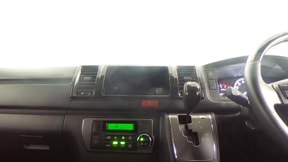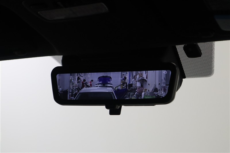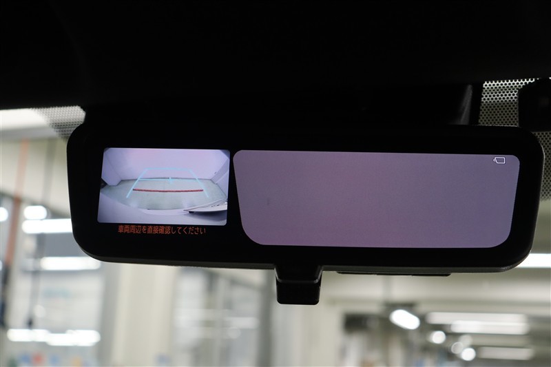 電子インナーミラーです。バックドア内側のカメラでインナーミラーに後方映像を表示します。大人数乗車していても、荷物が多くても後方確認が難なく出来ます。ハイエースのように大きな車にはとても便利ですね。