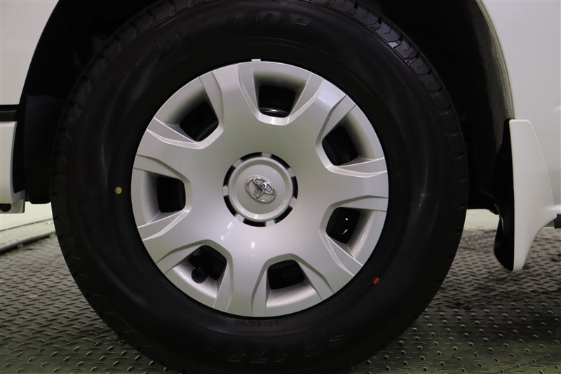 スッキリとしたデザインのホイールキャップ付きスチールホイールを装着しています。