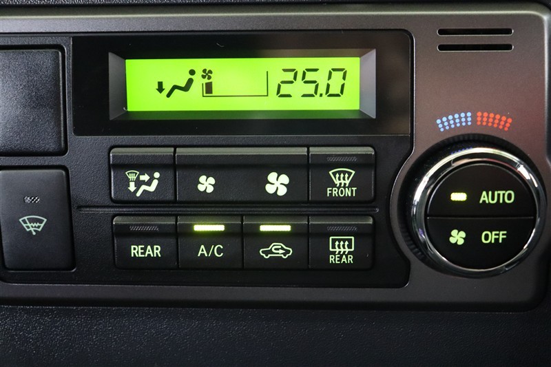 後部座席から操作できるリヤクーラー付です。ハイエースのように広い室内では後部座席でも快適に過ごすためのマストアイテムですね。
