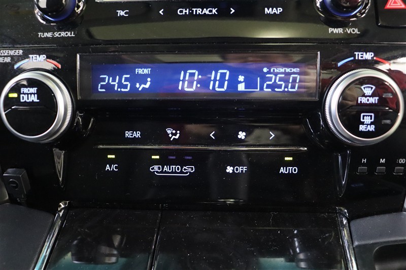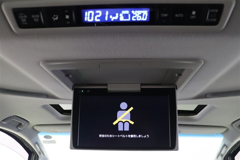 後席用モニターを装備しています。渋滞に巻き込まれた時やお迎えに行った時の待ち時間などに、これがあれば後席でも退屈することなく快適に過ごせます。後席から操作できるリヤエアコンもオートで快適です。
