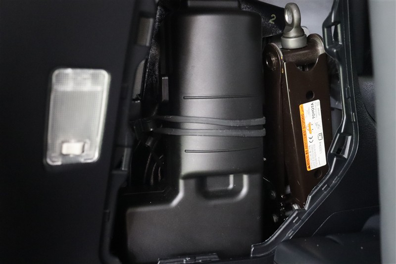 パンク修理キットを装備しています。最近は未使用のままで廃棄となるスペアタイヤが多いので、エコの観点からパンク修理キット付が増えています。軽量化によって燃費の向上にも一役かっているそうです。