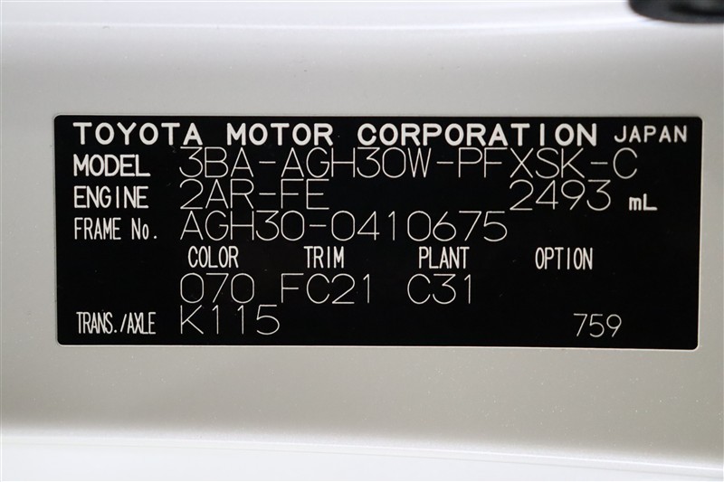 車両型式、フレームナンバーなどを表記したプレートです。最後までご覧いただきましてありがとうございました!ご不明な点などございましたら、お気軽にお問い合わせください。