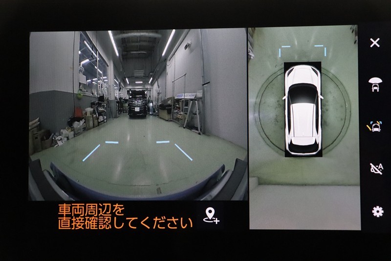 さらに、左右側面カメラも装備しています。駐車枠や隣のクルマなど周囲との位置関係がよくわかり、駐車しやすいですよ。運転席からは目視できない助手席側の側面も見えますので、路肩に幅寄せする際なども安心です。