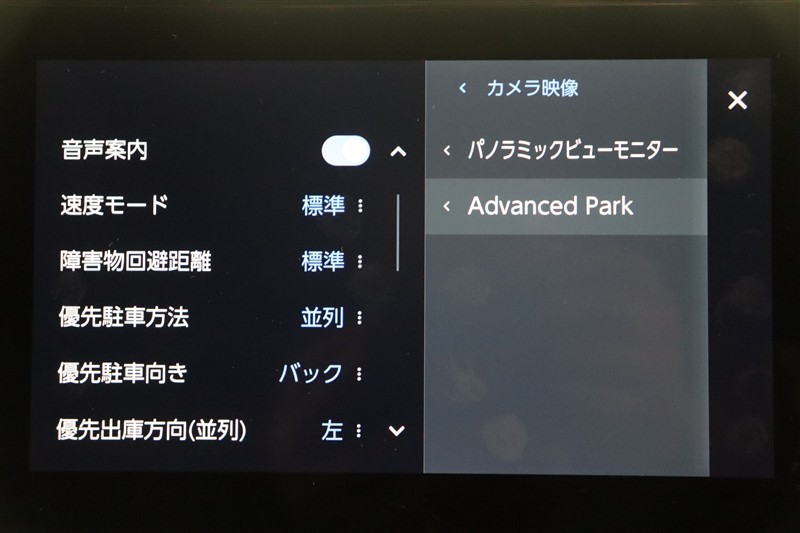 アドバンストパークを搭載しています。駐車したい場所の傍に停車して駐車位置を設定すれば、カメラとソナーで周囲を監視し、ステアリング・アクセル・ブレーキ操作が制御され駐車を完了してくれます。
