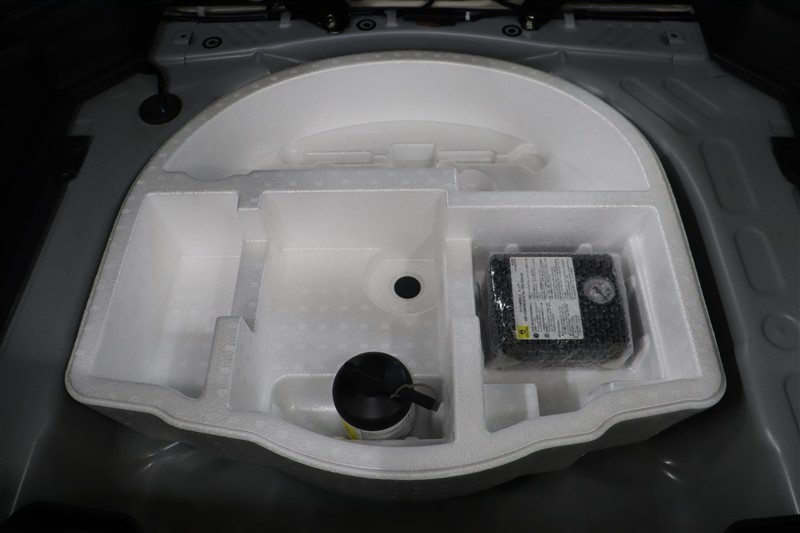 ラゲージスペースには床下収納を備えています。洗車用品などを入れておけて便利ですよ。スペース内にパンク修理キットを装備しています。最近は未使用のまま廃棄となるスペアタイヤが多いので、エコですね。