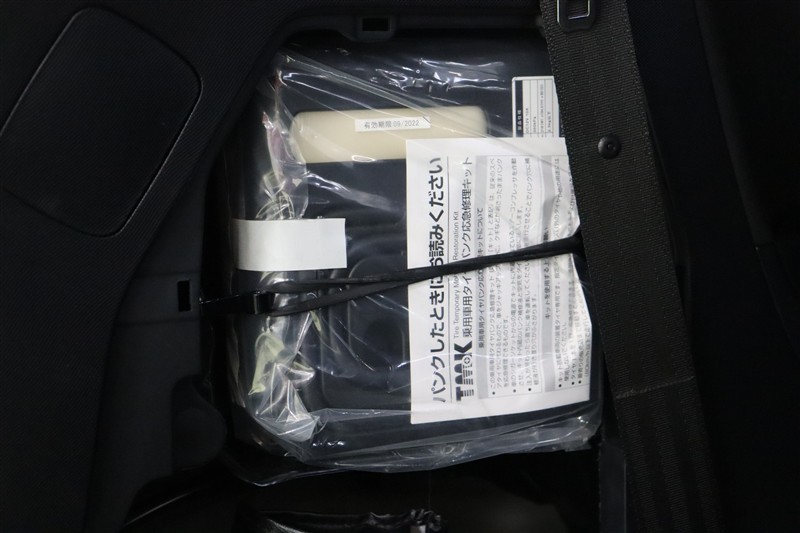 パンク修理キットを装備しています。最近は未使用のままで廃棄となるスペアタイヤが多いので、エコの観点からパンク修理キット付が増えています。軽量化によって燃費の向上にも一役かっているそうです。