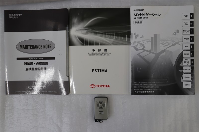メンテナンスノート、取扱説明書です。メンテナンスノートにはその車の整備記録が事細やかに記録されています。車の履歴が判るとても重要な物です。車検証と一緒に大切に保管してくださいね!