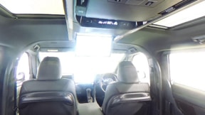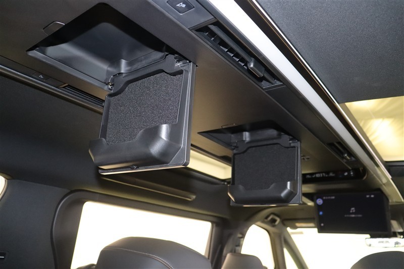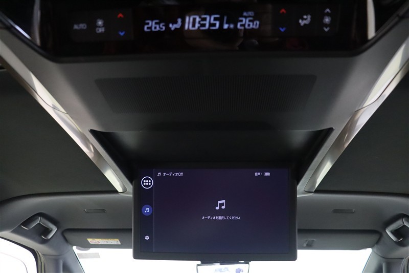 機能性・収納性を両立するスマートな天井にはフリップダウンモニターを装備しています。リアエアコンも後席左右独立のオートエアコンです。照明や各種スイッチ類は車両センターに集約し、より扱いやすくなっています