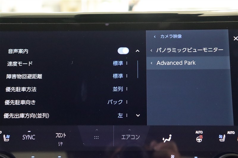アドバンストパークを搭載しています。駐車したい場所の傍に停車して駐車位置を設定すれば、カメラとソナーで周囲を監視し、ステアリング・アクセル・ブレーキ操作が制御され駐車を完了してくれます。