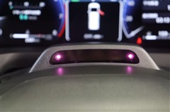 ヘッドアップディスプレイ(HUD)です。運転に必要な情報をフロントガラスの視野内に投影することで視線を外さず確認できます。視線移動や焦点調節が少なくて済むので安全性の向上に貢献します。