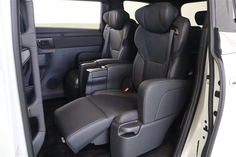 驚くほどのスライド幅で座り心地の良い2列目はエグゼクティブパワーシート。足を伸ばしてくつろげるオッドマン付のシートで至福の時が過ごせます。リクライニングやオットマン操作は電動。スライドのみ手動です。