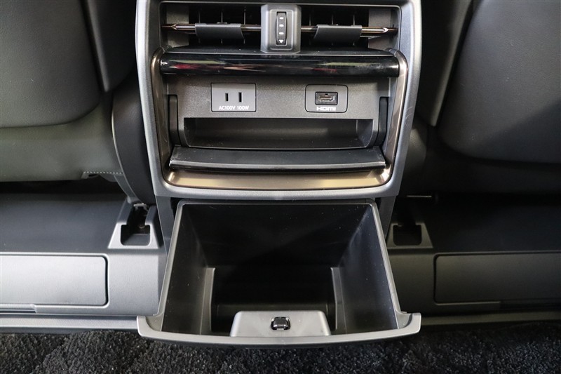 センターコンソールの後方には収納や100V・100W電源が装備されています。フロントシートの足元にはスライドトレイ式収納を、シートバックにはタブレットや雑誌などの収納に便利なポケットが装備されています