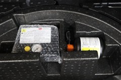 パンク修理キットを装備しています。最近は未使用のままで廃棄となるスペアタイヤが多いので、エコの観点からパンク修理キット付が増えています。軽量化によって燃費の向上にも一役かっているそうです。