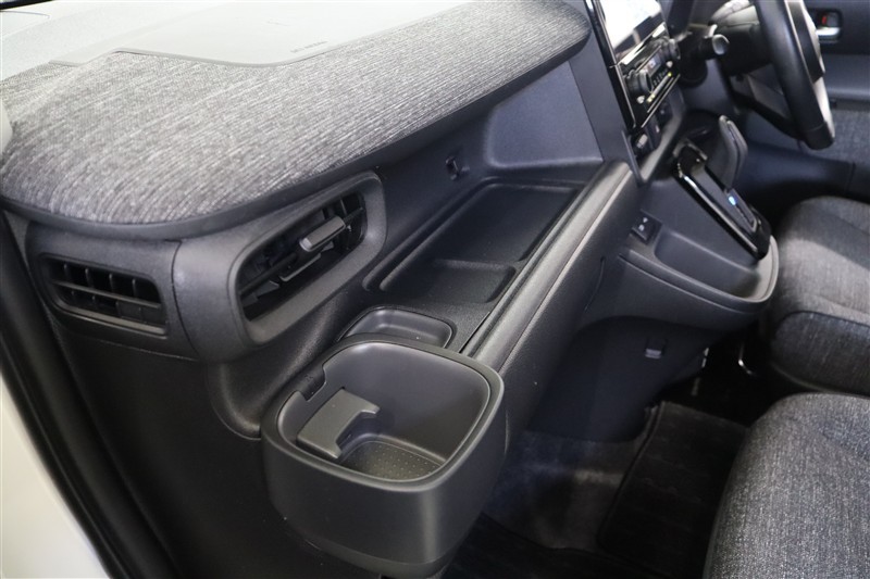 紙パックや1000mlペットボトルも収納できる堀込式のドリンクホルダーを装備。ペットボトルのフタや飴などを置くのに便利な小さなトレイや、日傘やスマホなどの置き場にちょうど良いトレイも備えています。