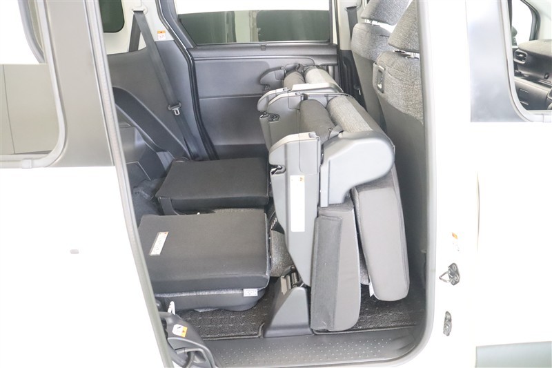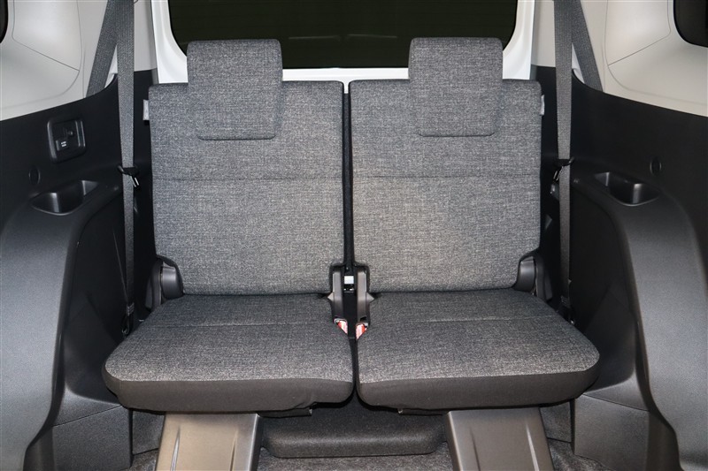 2列目はベンチシートです。タンブル機構付で、ワンタッチで折りたためますので3列目へのアクセスがしやすくなっています。座面がフラットなのでお買い物袋やかばんなどを置いても倒れにくいですよ。