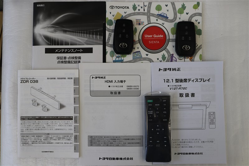 メンテナンスノート、ユーザーガイドです。メンテナンスノートにはその車の整備記録が事細やかに記録されています。車の履歴が判るとても重要な物です。車検証と一緒に大切に保管してくださいね!
