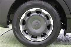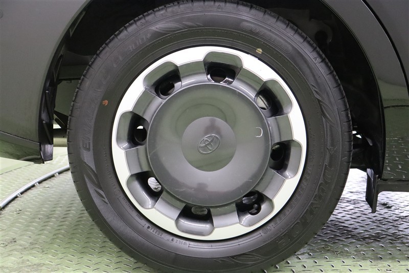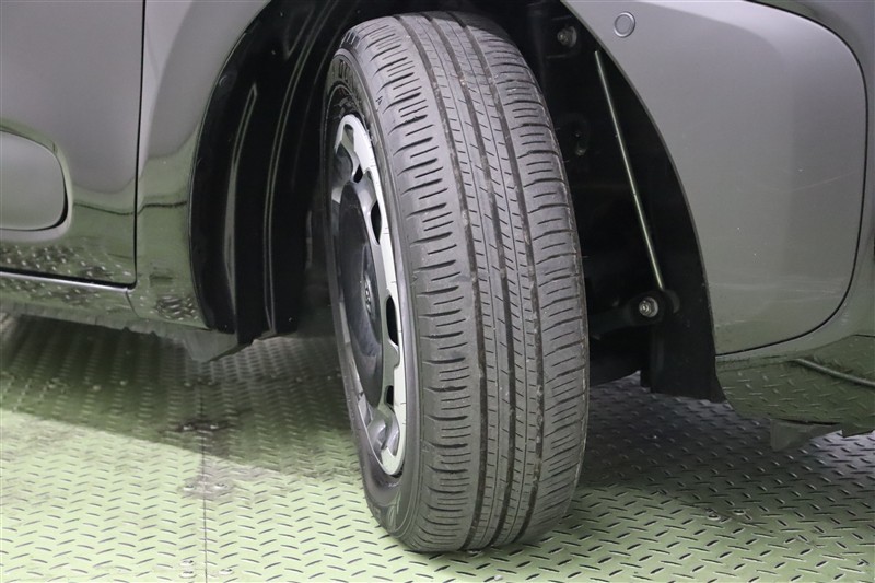 ダークグレーメタリック×シルバーメタリック塗装でお洒落なツール感のあるデザインのホイールキャップ付きスチールホイールを装着しています。