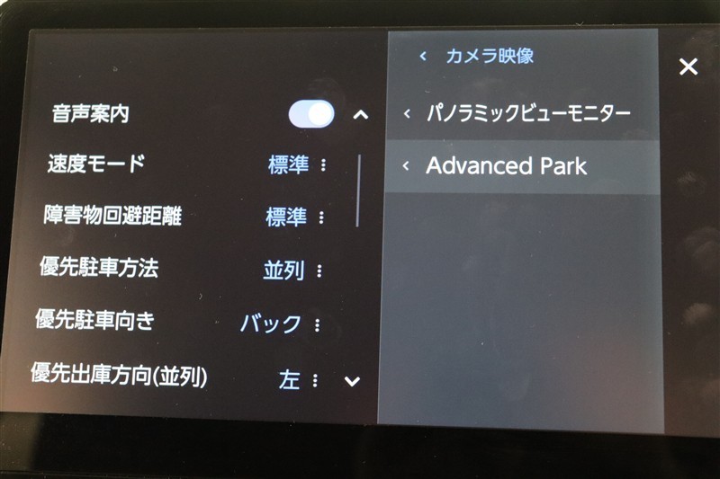 アドバンストパークを搭載しています。駐車したい場所の傍に停車して駐車位置を設定すれば、カメラとソナーで周囲を監視し、ステアリング・アクセル・ブレーキ操作が制御され駐車を完了してくれます。