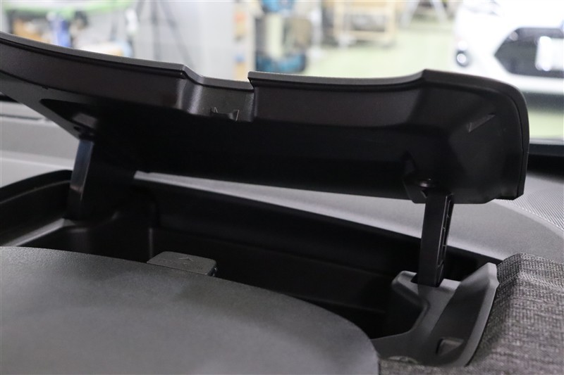 運転席前には便利なアッパーボックスを装備しています。フタは、大きく開きますが、安全の為、開いたままの状態を維持することはできません。