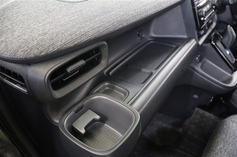 紙パックや1000mlペットボトルも収納できる堀込式のドリンクホルダーを装備。ペットボトルのフタや飴などを置くのに便利な小さなトレイや、日傘やスマホなどの置き場にちょうど良いトレイも備えています。