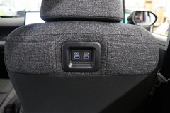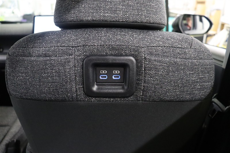 運転席のシートバックには充電用USB端子を2個装備しています。両サイドには充電しているスマホなどを入れておけるポケットも備えています。