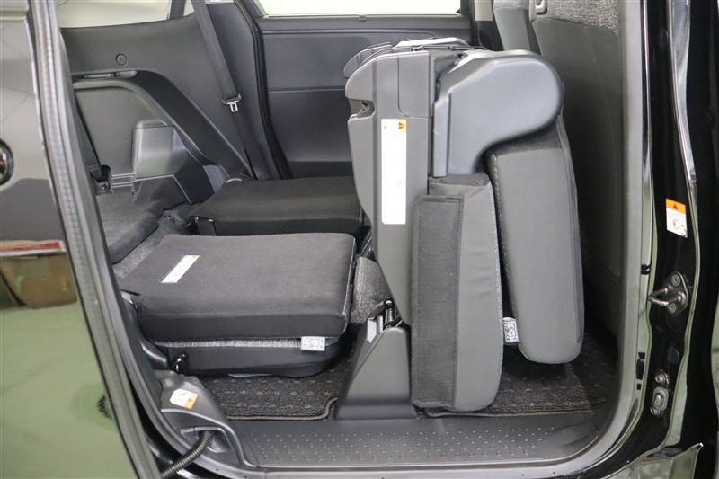 両側ハンズフリーパワースライドドアです。スマートキーを持っていれば、フロントドアハンドル下側の床下奥のセンサー部に足先を出し入れするだけでスライドドアが開閉。両手がふさがっているときなどに便利です。