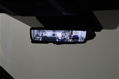 電子インナーミラーです。バックドア内側にカメラを取付けてインナーミラーに後方映像を表示。例えば、後席に大柄の方が座っていても後方確認が難なく出来ます。モニターモードとミラーモードは切替え可能です。