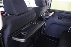 後部座席用にドリンクホルダー付シートバックテーブルを装備しています。車内でランチやお菓子も置く場所に困りません。使わない時はたたんでおけるので邪魔になりません。