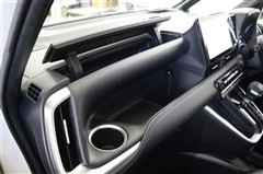 助手席側のオープントレイは深さ違いのトレイで使いやすいデザインです。置きやすく取り出しやすいのがオープントレイの良いところですね。上部にはリッド付きの収納スペースも備えています。