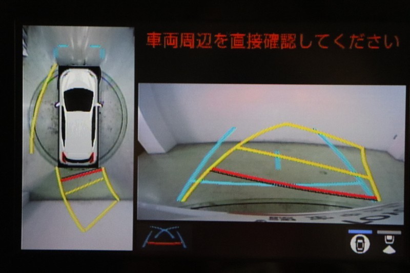 ハンドル操作にあわせてガイドラインが変化するバックガイドモニター搭載。全方位、フロント、左右側面モニターも搭載しているので、周囲の状況を確認しながら駐車出来ます。慣れない場所でも心強いですよ。